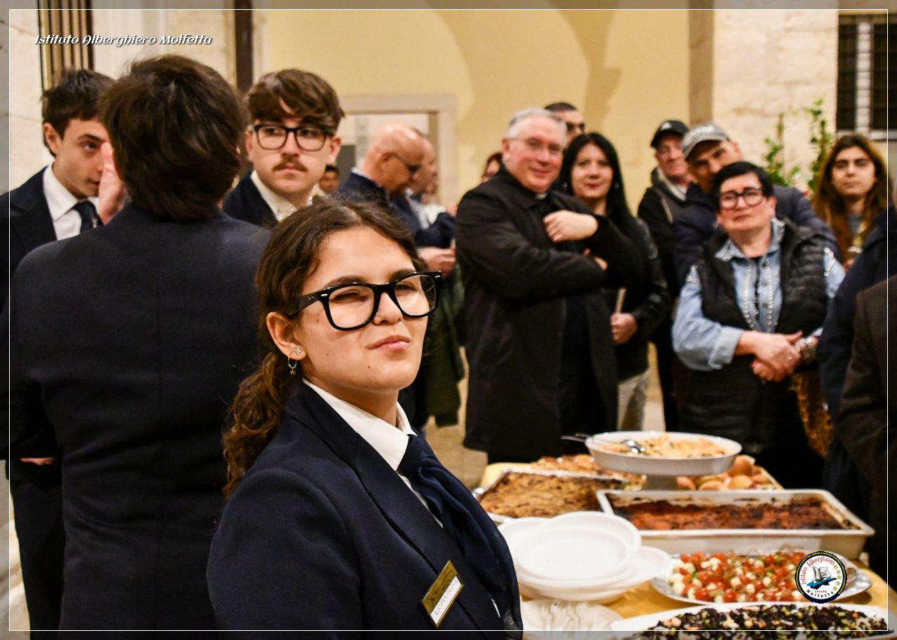 Ieri sera, al termine della celebrazione eucaristica per i 50 anni di sacerdozio di Mons. Domenico Cornacchia, un gruppo di alunni, assistenti tecnici e docenti del nostro Istituto ha organizzato e gestito il buffet per festeggiare e salutare il Vescovo al termine del suo mandato nella Diocesi di Molfetta, Ruvo di Puglia, Giovinazzo e Terlizzi.
