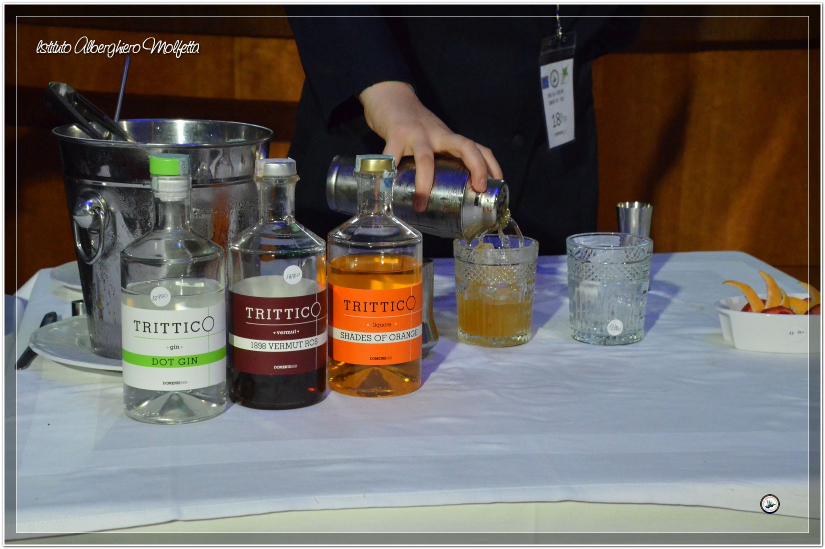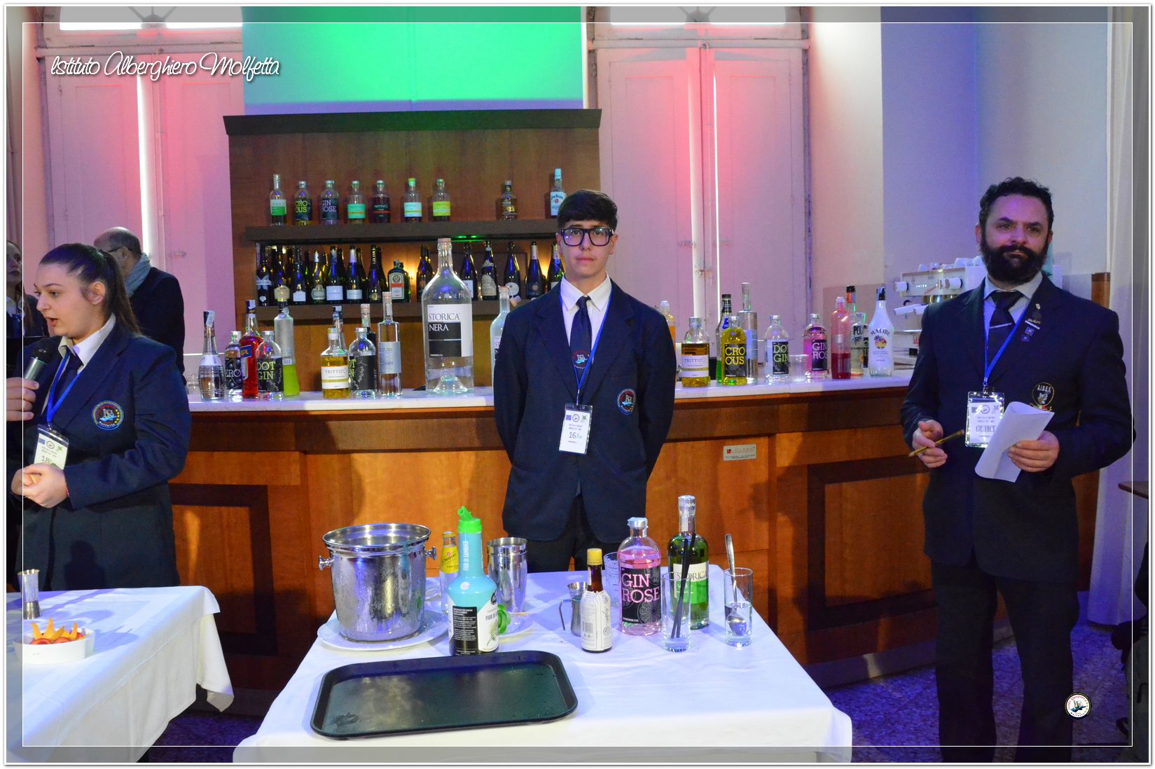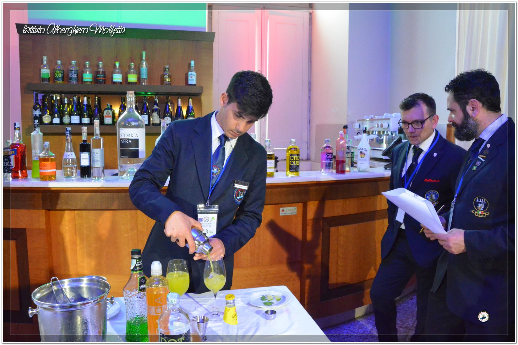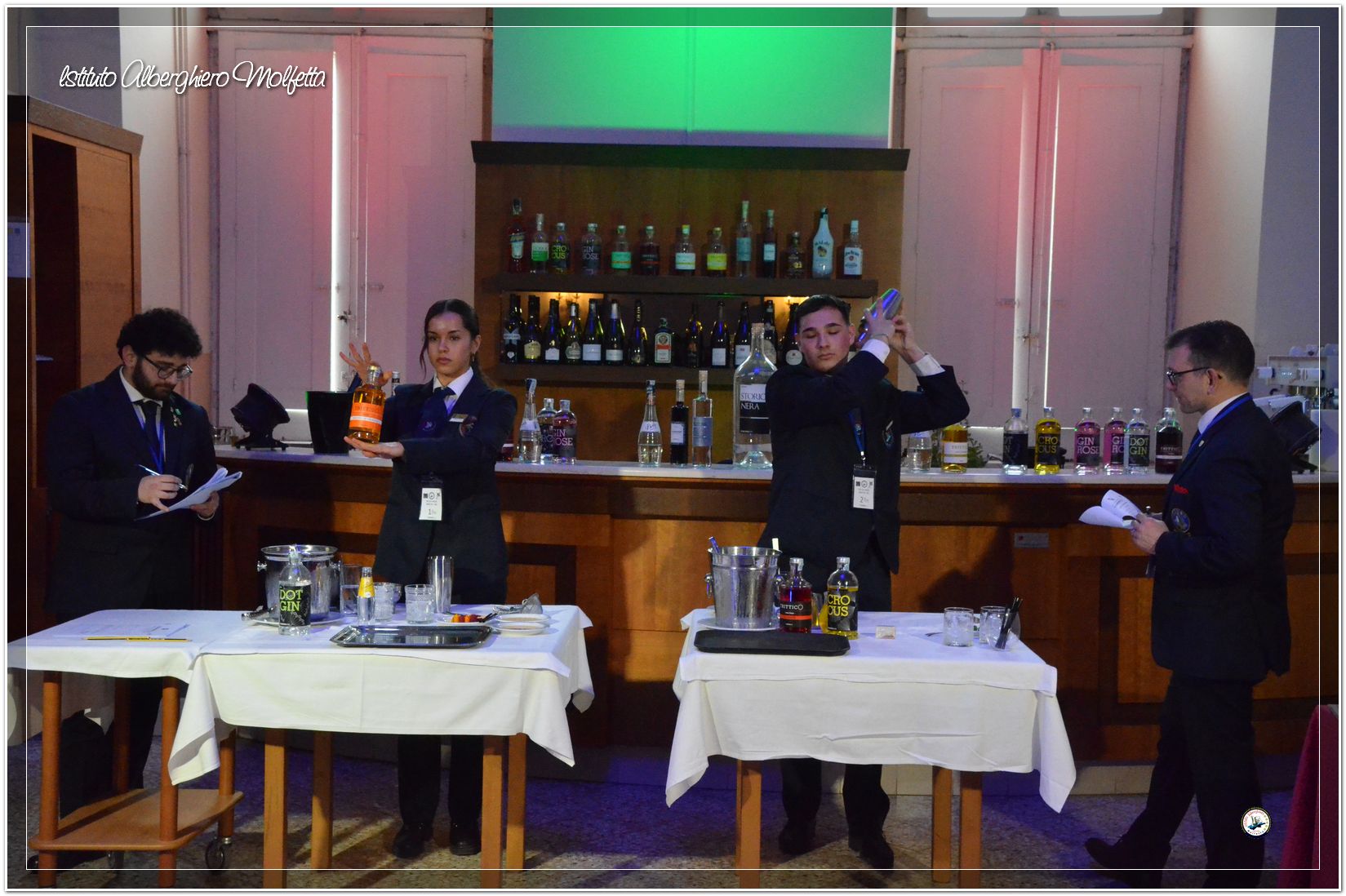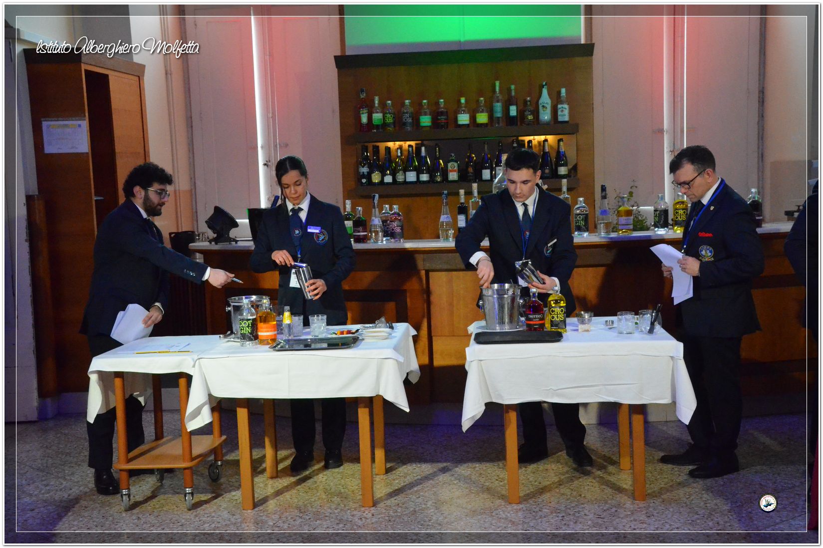 Gli studenti delle seconde classi e quelli del tiennio del settore sala si sono esibiti nella preparazione di cocktails che sono stat giudicati da una commisssione conposta dai delegati dell’AIBES PUGLIA Associazione Italiana Barman e Sostenitori, dell’AIS Puglia Associazione Italiana Sommelier e da Cristina Domenis in rappresentanza della nota distilleria di Cividale del Friuli DOMENIS 1898.