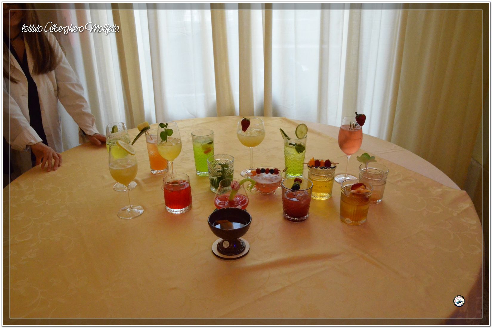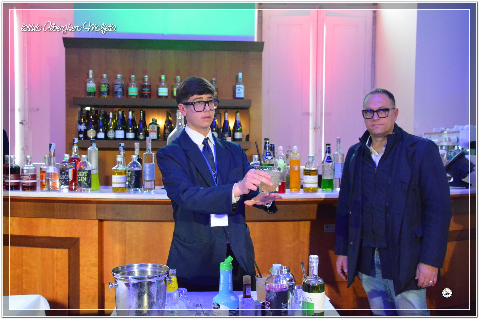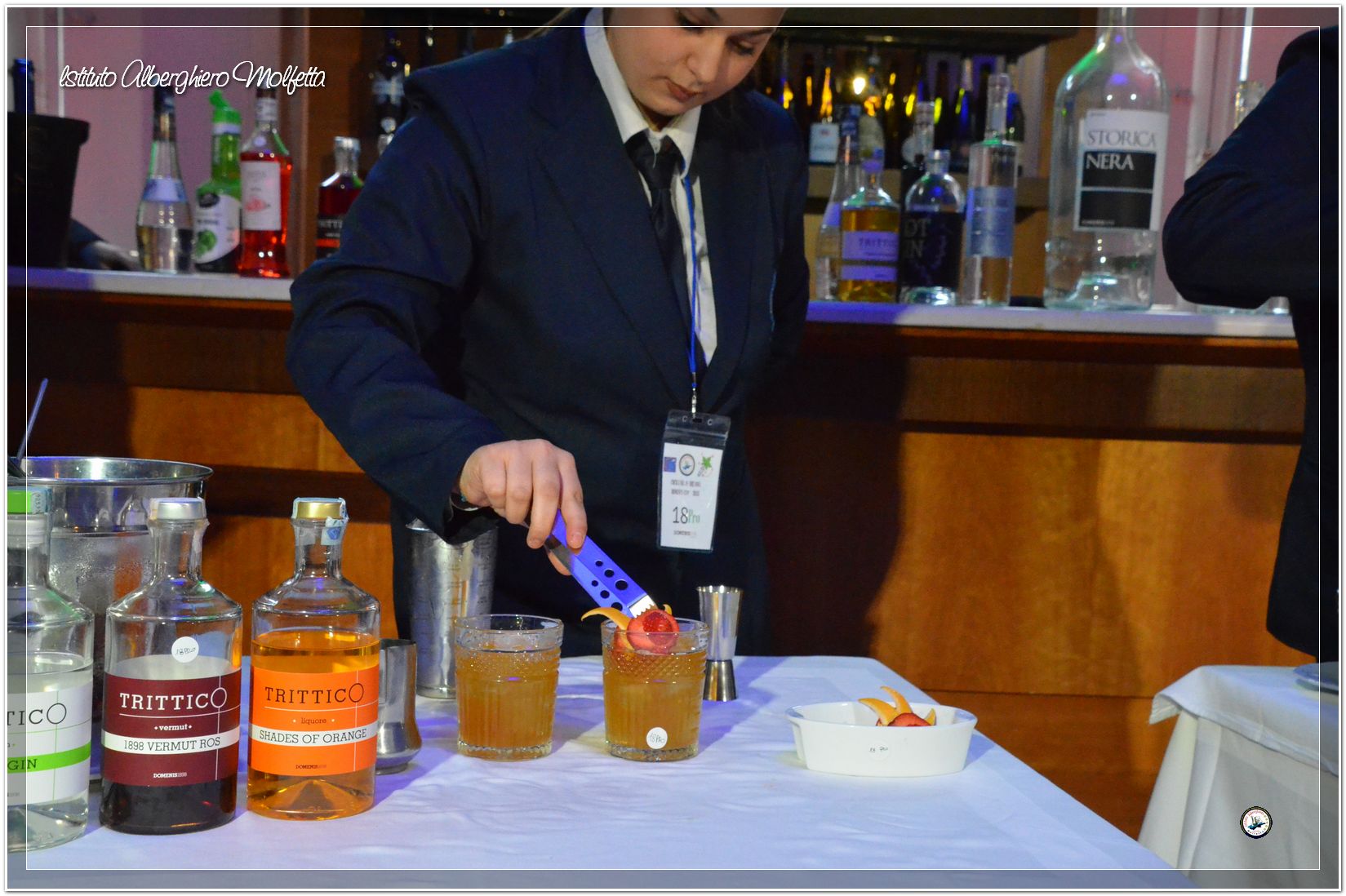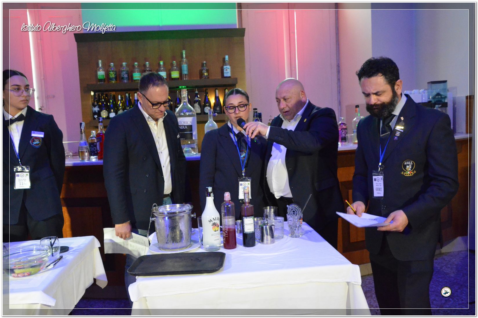 Gli studenti delle seconde classi e quelli del tiennio del settore sala si sono esibiti nella preparazione di cocktails che sono stat giudicati da una commisssione conposta dai delegati dell’AIBES PUGLIA Associazione Italiana Barman e Sostenitori, dell’AIS Puglia Associazione Italiana Sommelier e da Cristina Domenis in rappresentanza della nota distilleria di Cividale del Friuli DOMENIS 1898.