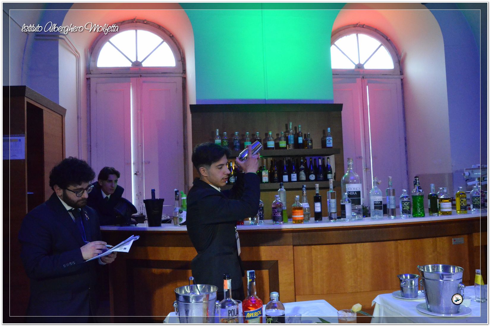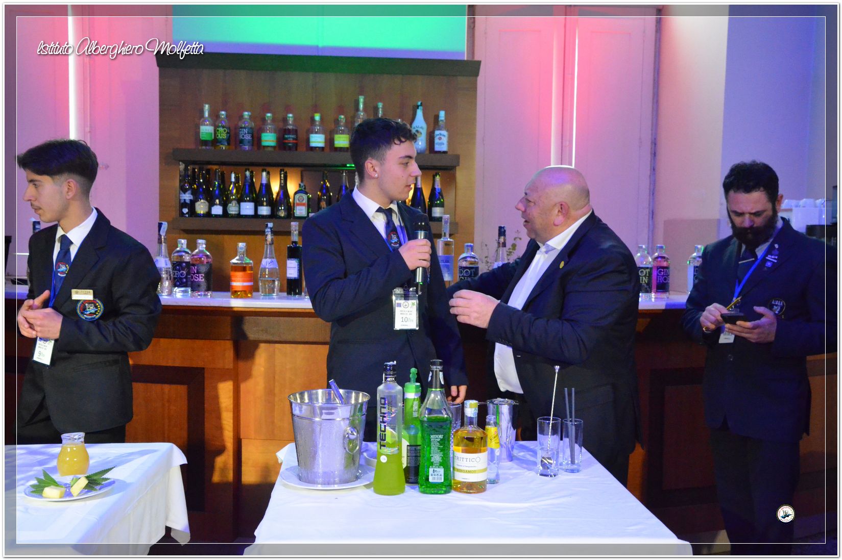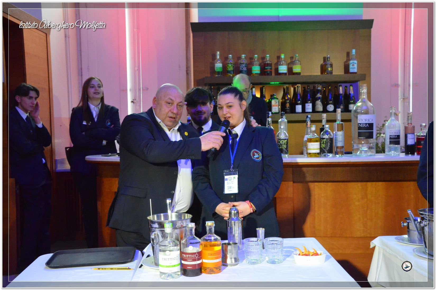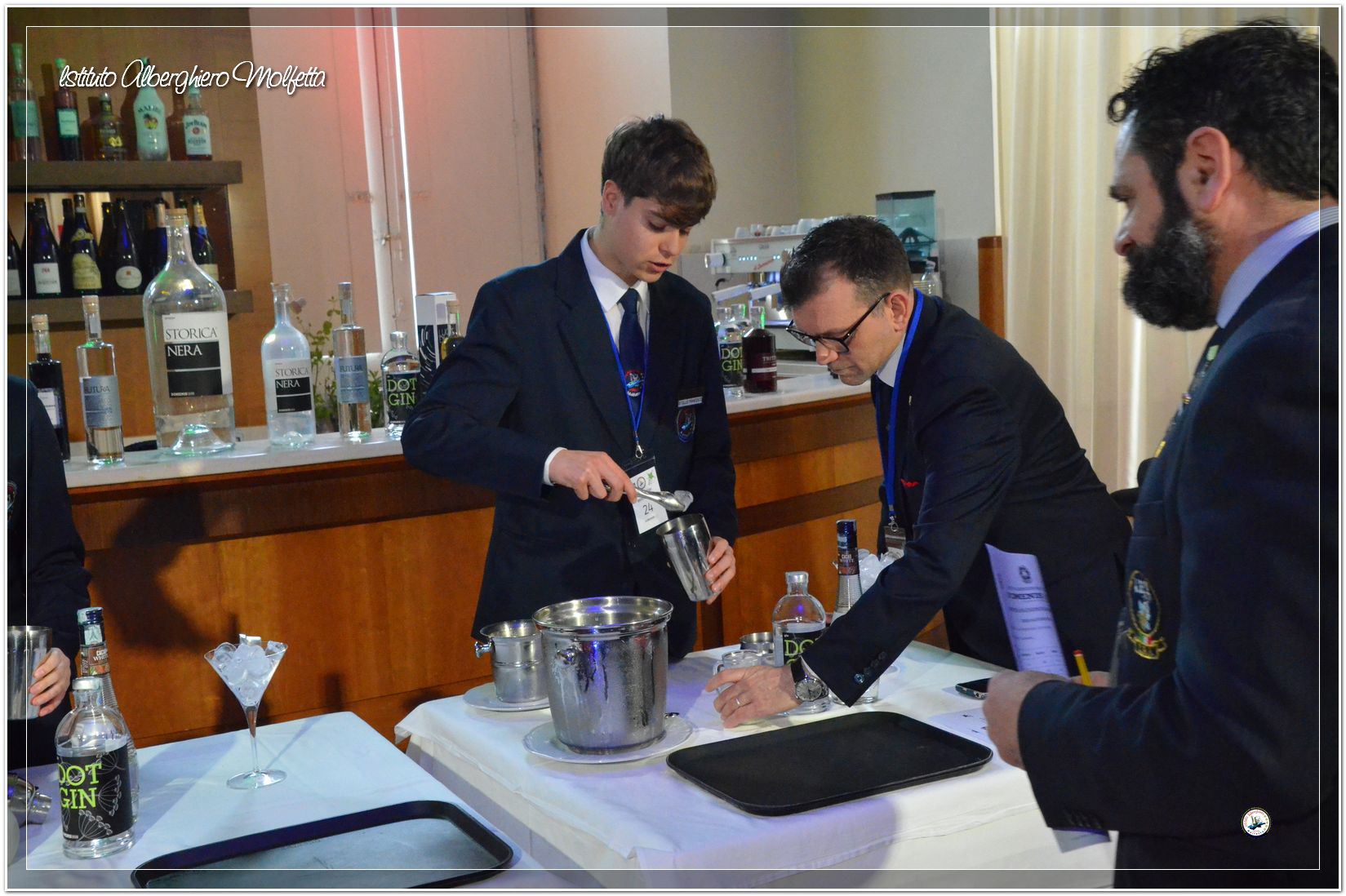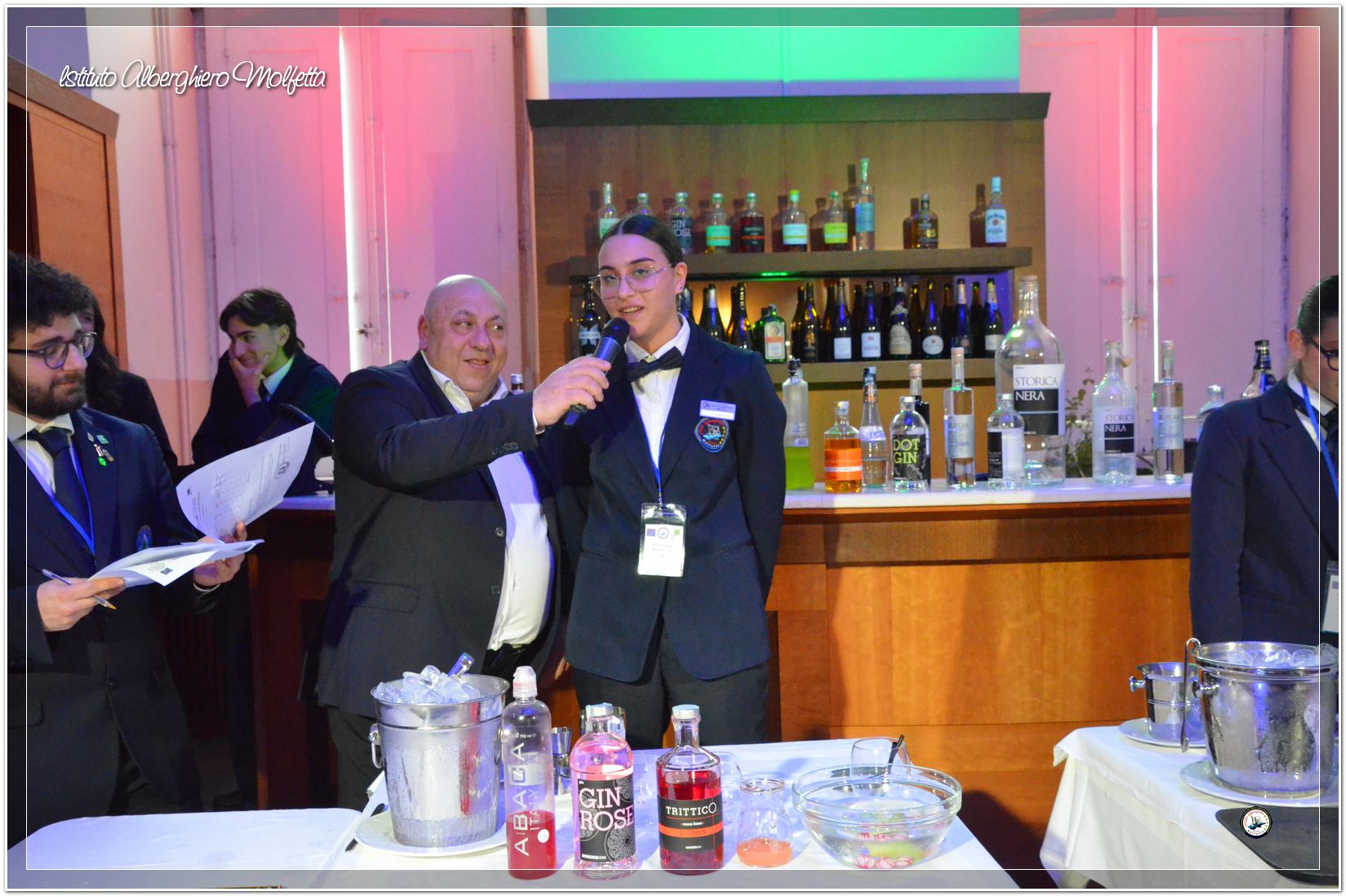 Gli studenti delle seconde classi e quelli del tiennio del settore sala si sono esibiti nella preparazione di cocktails che sono stat giudicati da una commisssione conposta dai delegati dell’AIBES PUGLIA Associazione Italiana Barman e Sostenitori, dell’AIS Puglia Associazione Italiana Sommelier e da Cristina Domenis in rappresentanza della nota distilleria di Cividale del Friuli DOMENIS 1898.