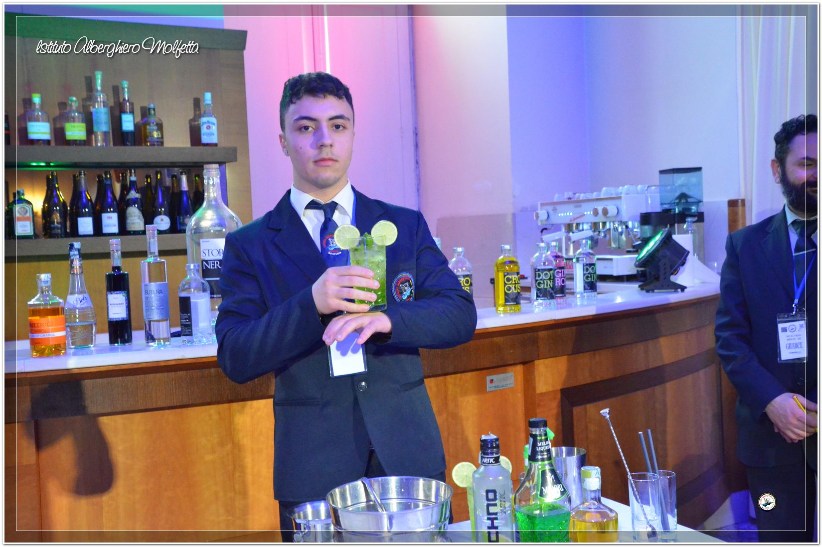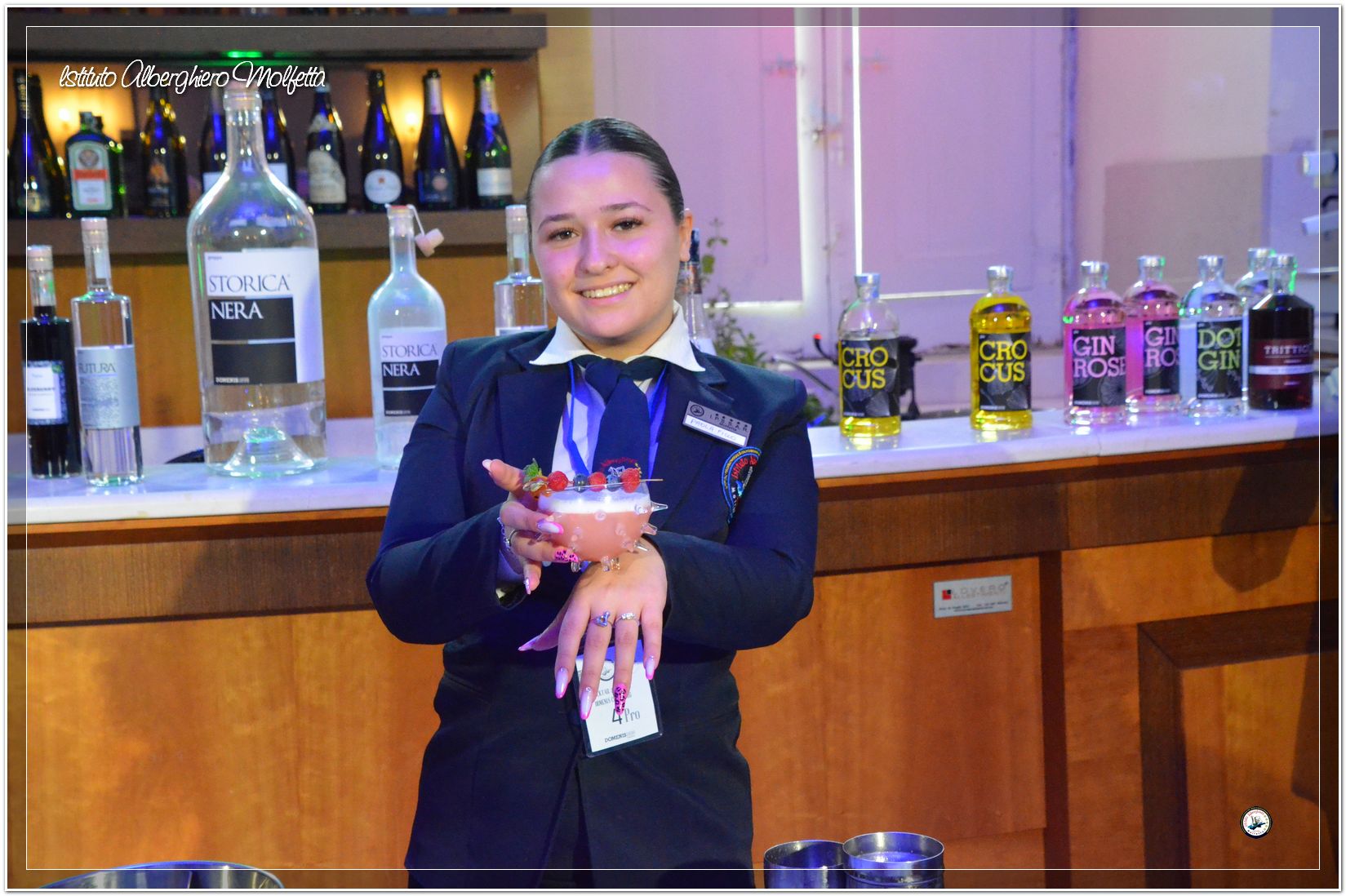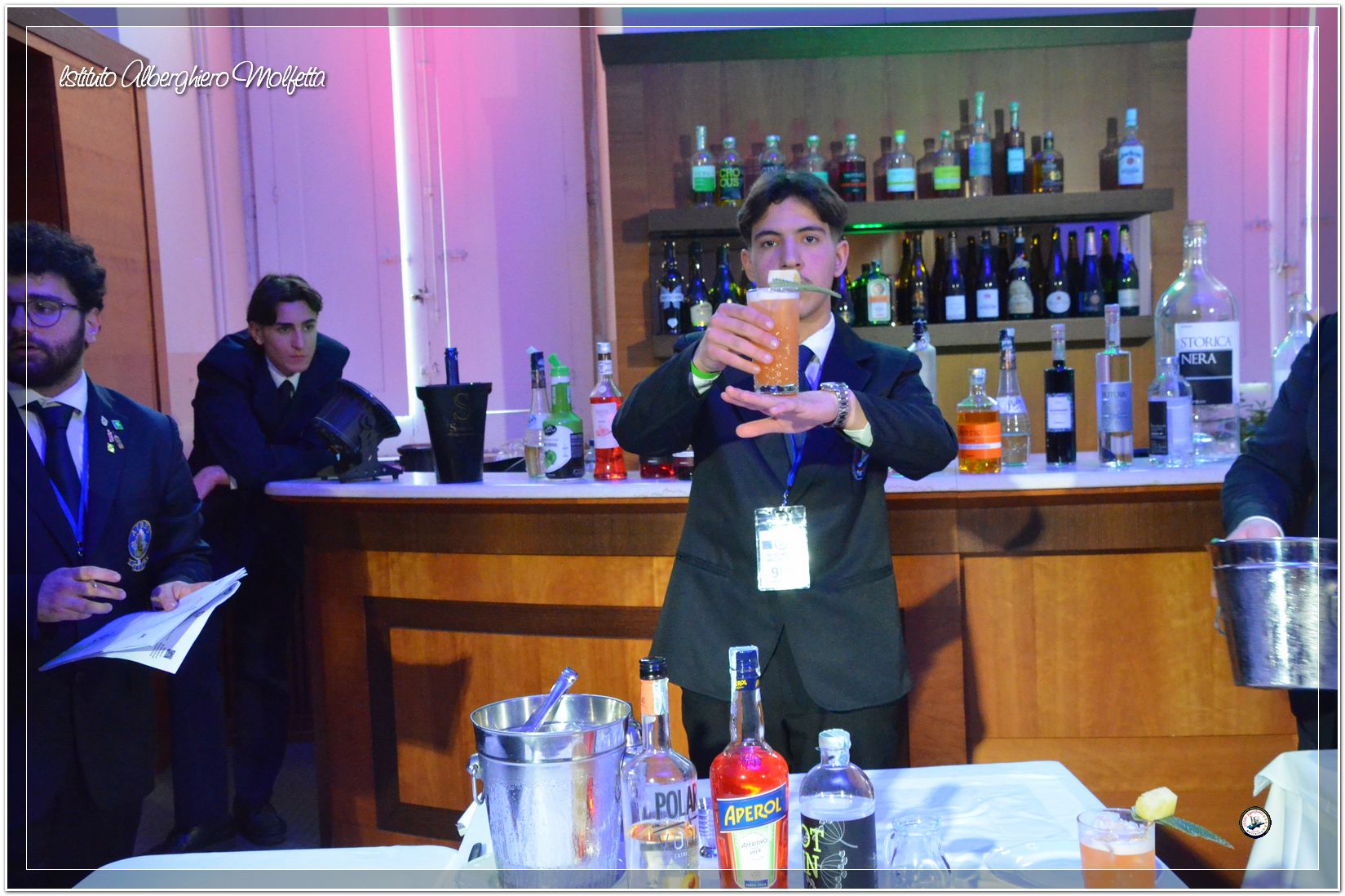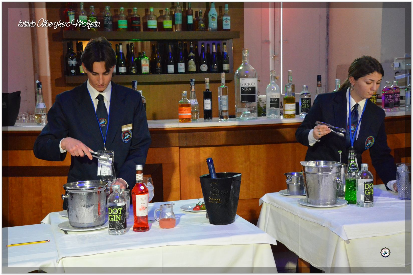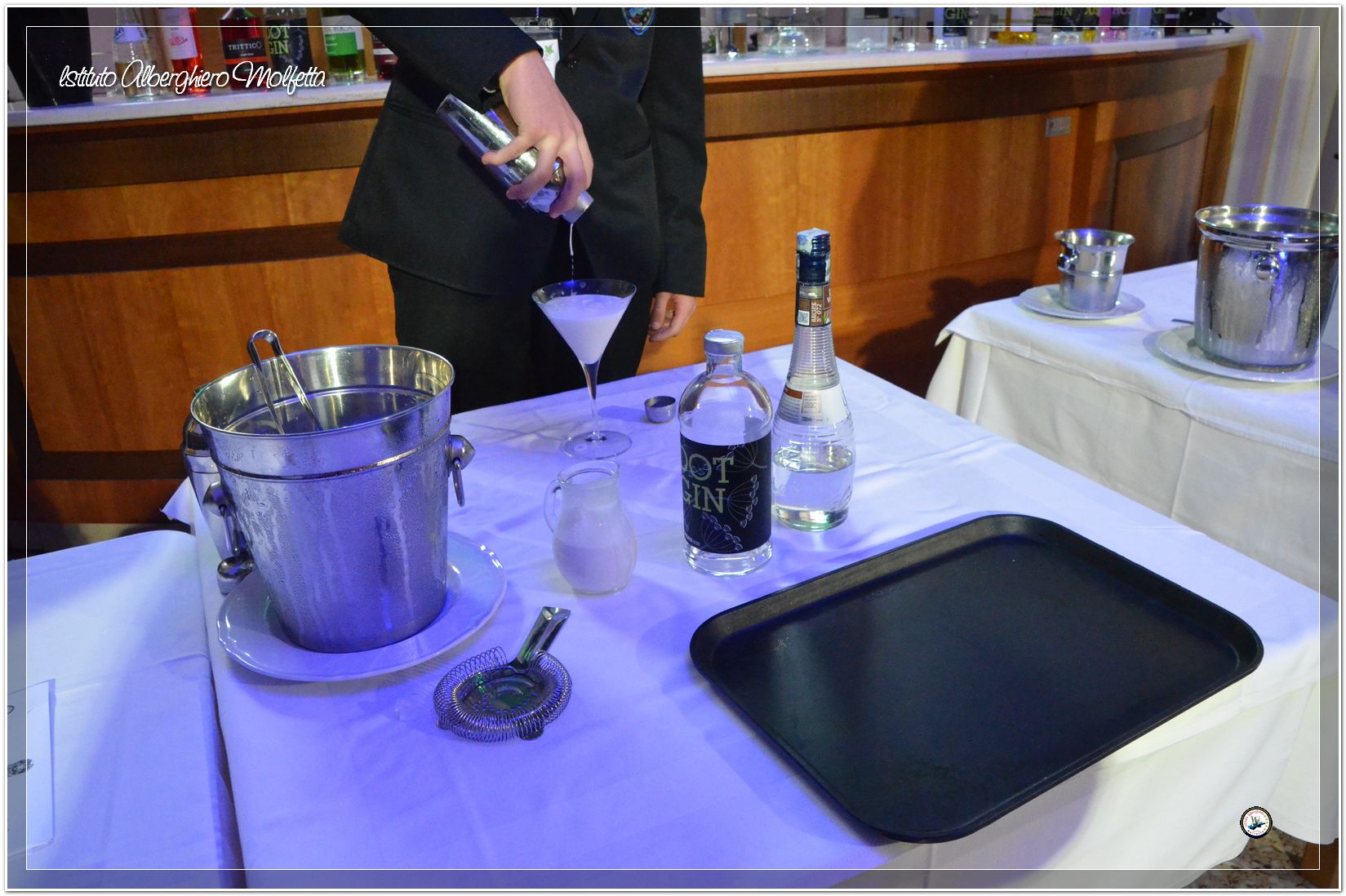 Gli studenti delle seconde classi e quelli del tiennio del settore sala si sono esibiti nella preparazione di cocktails che sono stat giudicati da una commisssione conposta dai delegati dell’AIBES PUGLIA Associazione Italiana Barman e Sostenitori, dell’AIS Puglia Associazione Italiana Sommelier e da Cristina Domenis in rappresentanza della nota distilleria di Cividale del Friuli DOMENIS 1898.