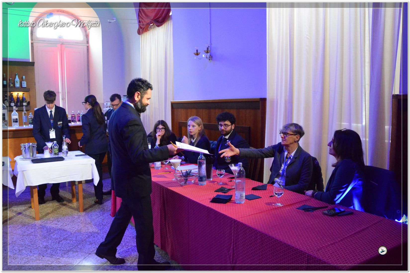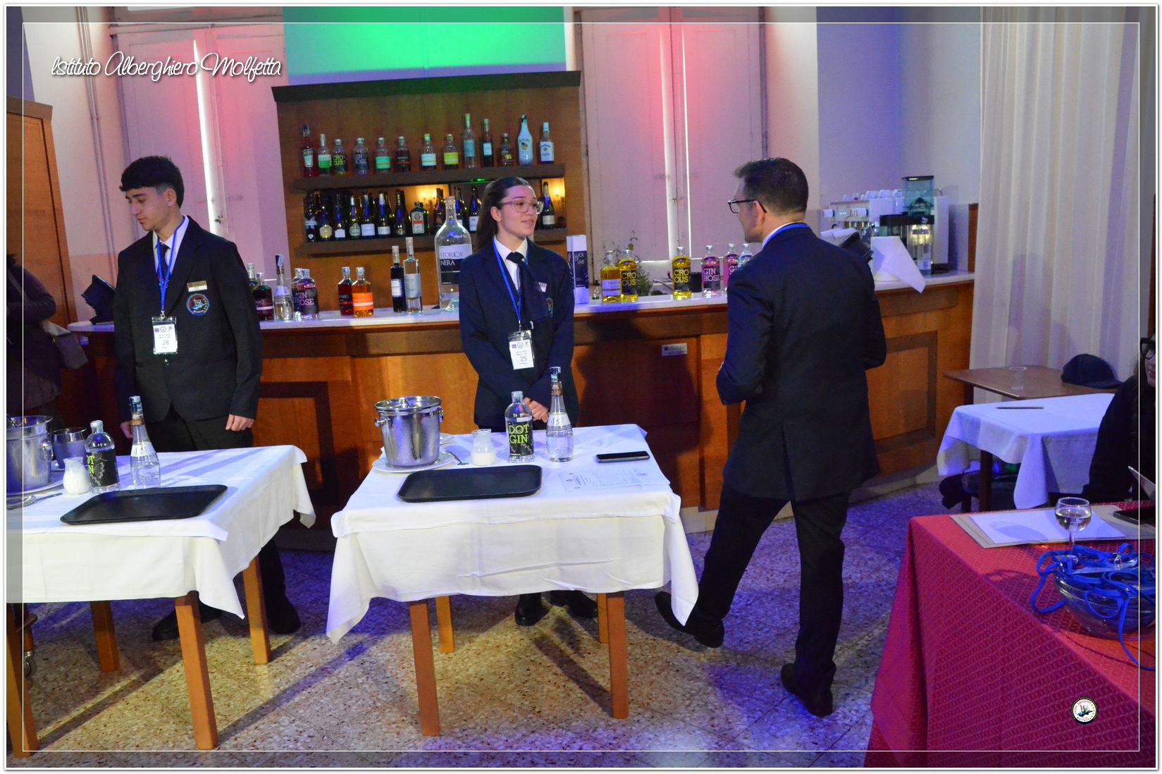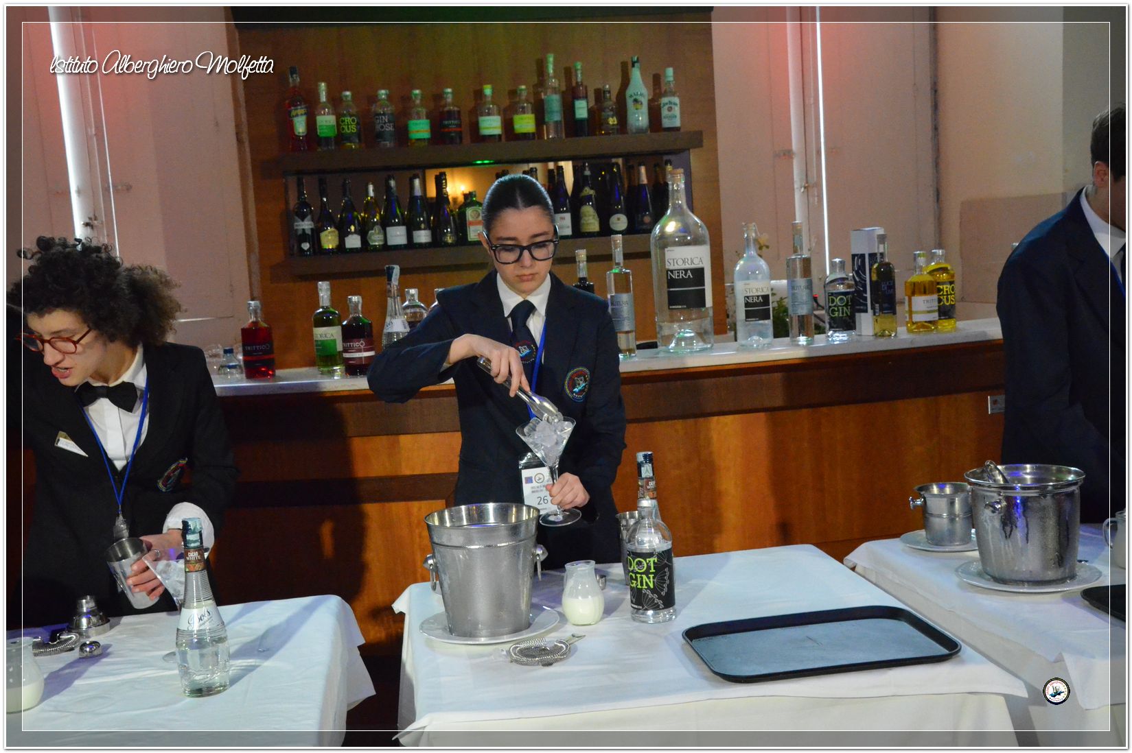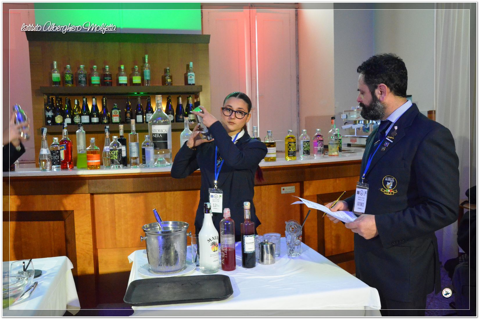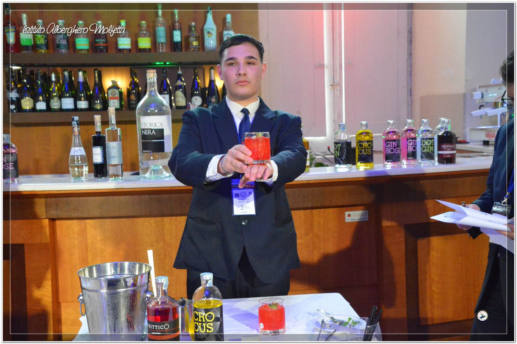 Gli studenti delle seconde classi e quelli del tiennio del settore sala si sono esibiti nella preparazione di cocktails che sono stat giudicati da una commisssione conposta dai delegati dell’AIBES PUGLIA Associazione Italiana Barman e Sostenitori, dell’AIS Puglia Associazione Italiana Sommelier e da Cristina Domenis in rappresentanza della nota distilleria di Cividale del Friuli DOMENIS 1898.
