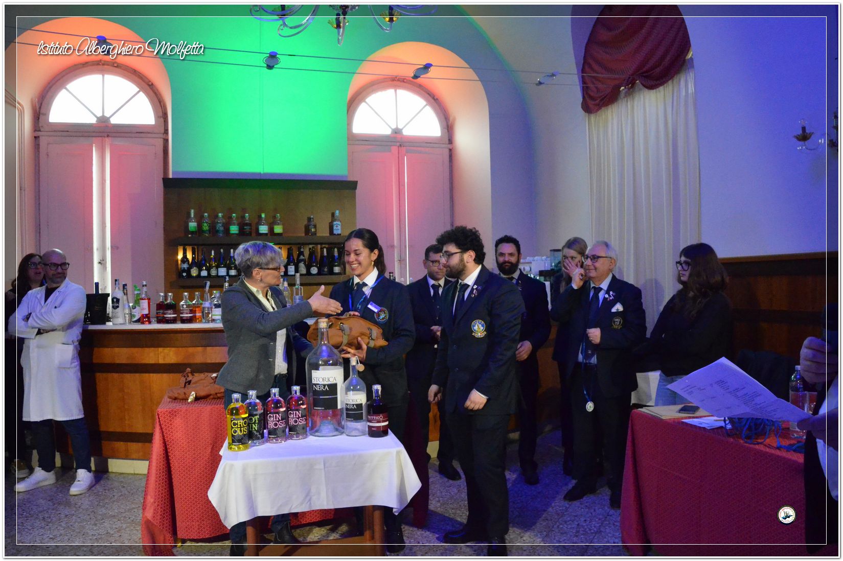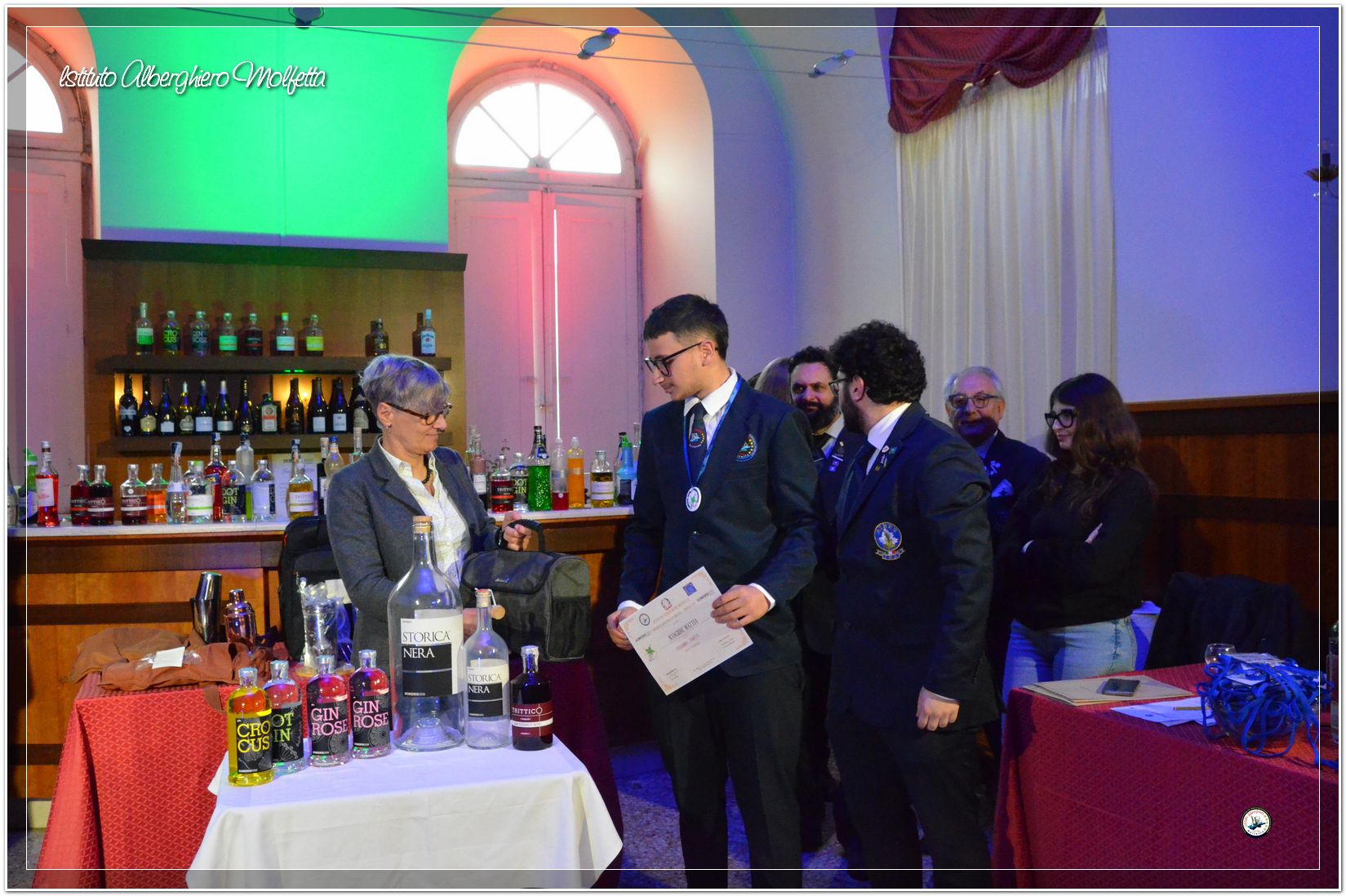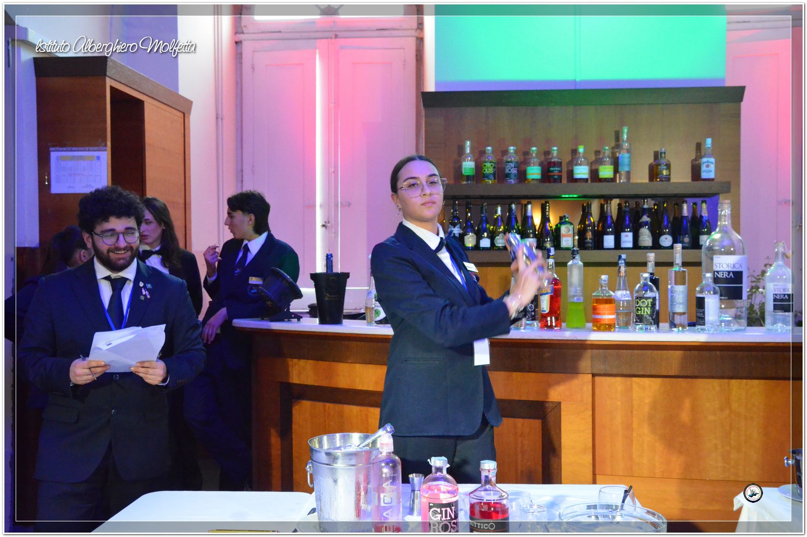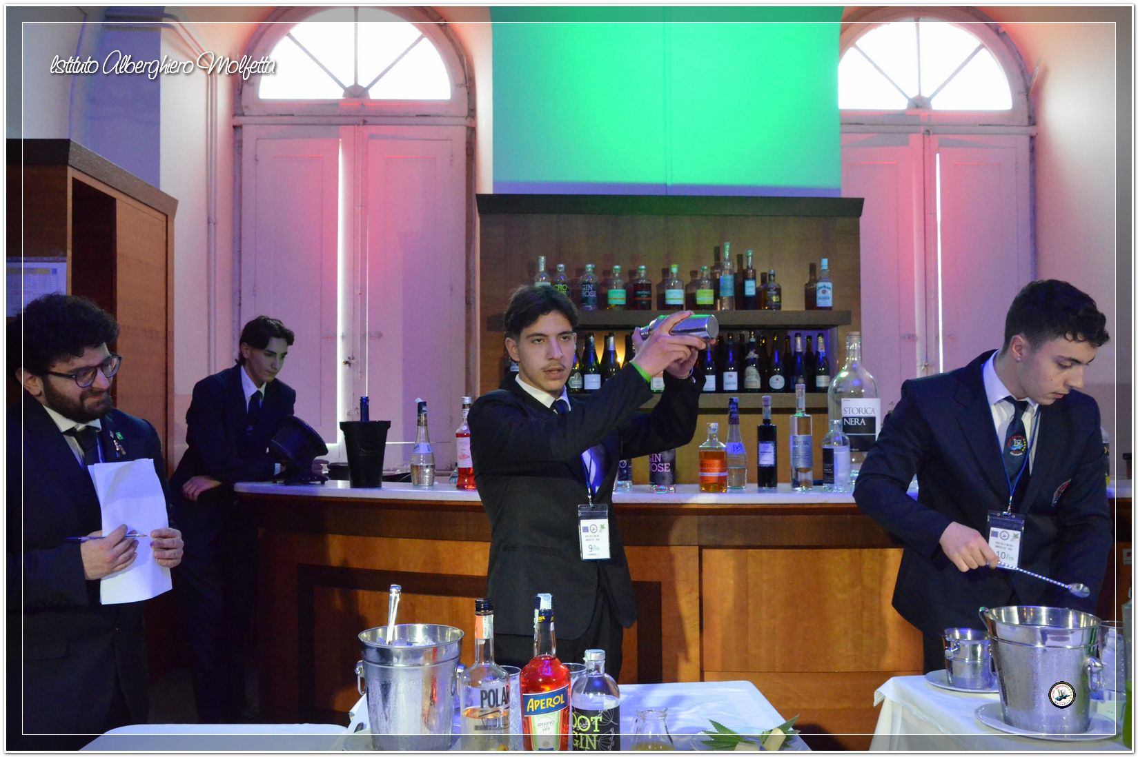 Gli studenti delle seconde classi e quelli del tiennio del settore sala si sono esibiti nella preparazione di cocktails che sono stat giudicati da una commisssione conposta dai delegati dell’AIBES PUGLIA Associazione Italiana Barman e Sostenitori, dell’AIS Puglia Associazione Italiana Sommelier e da Cristina Domenis in rappresentanza della nota distilleria di Cividale del Friuli DOMENIS 1898.