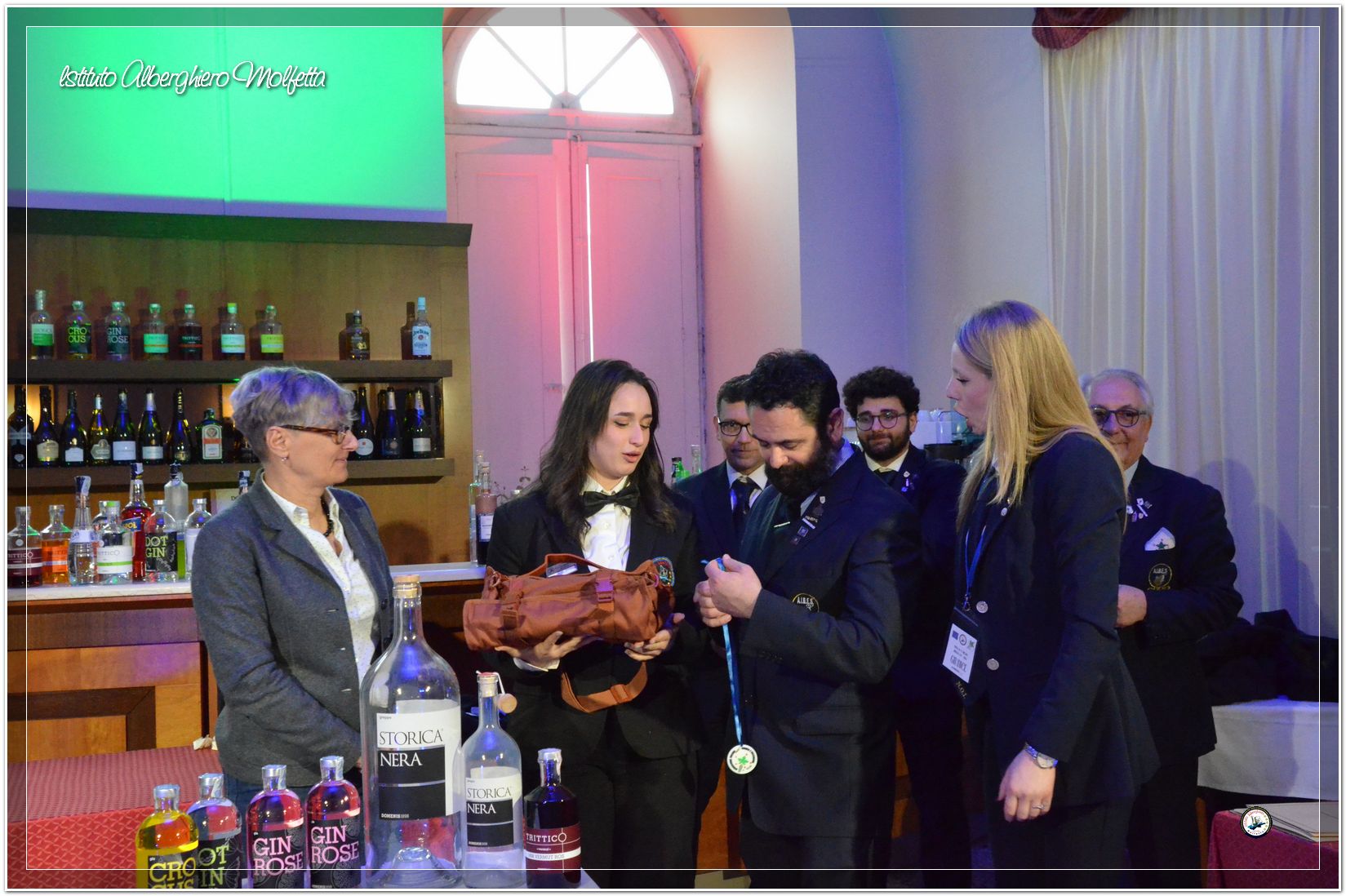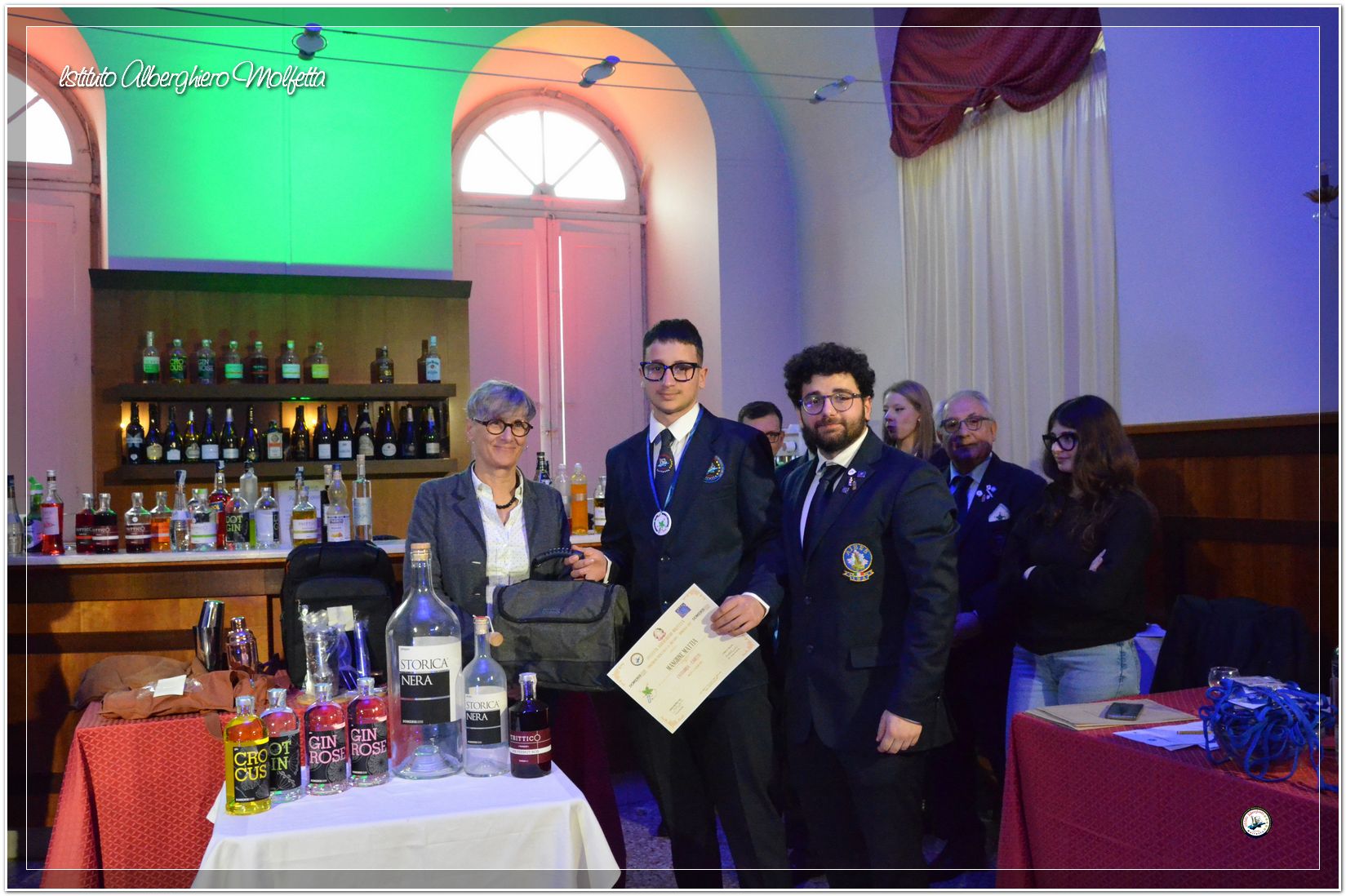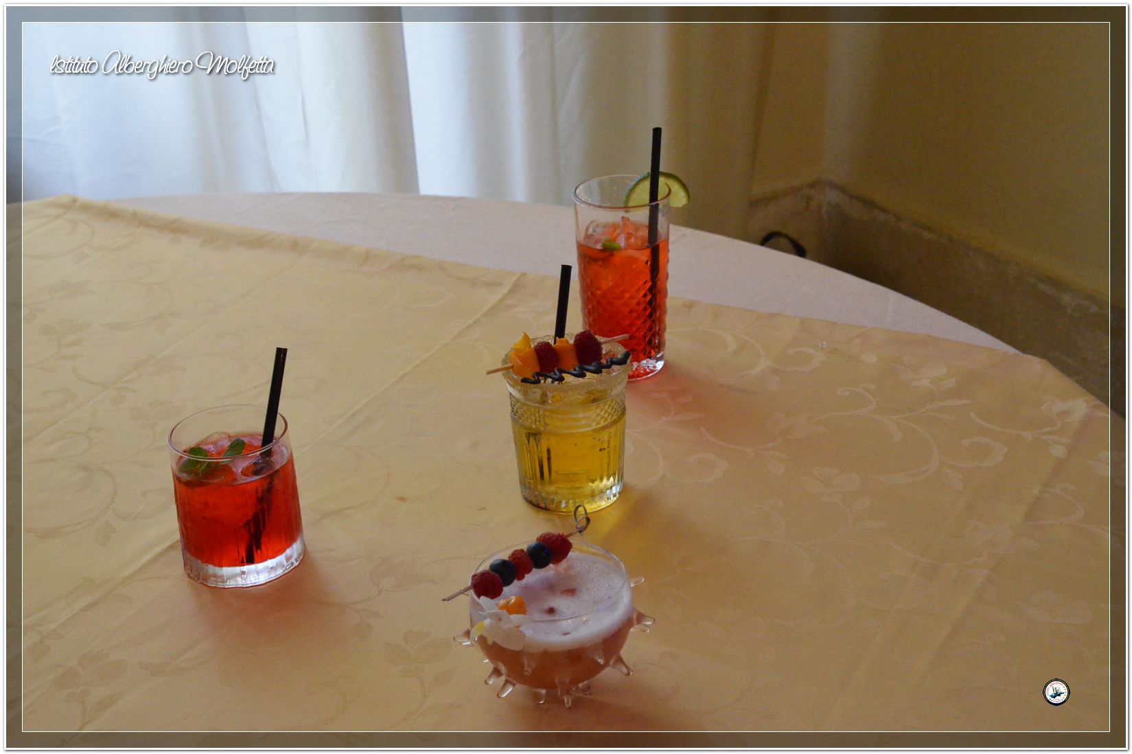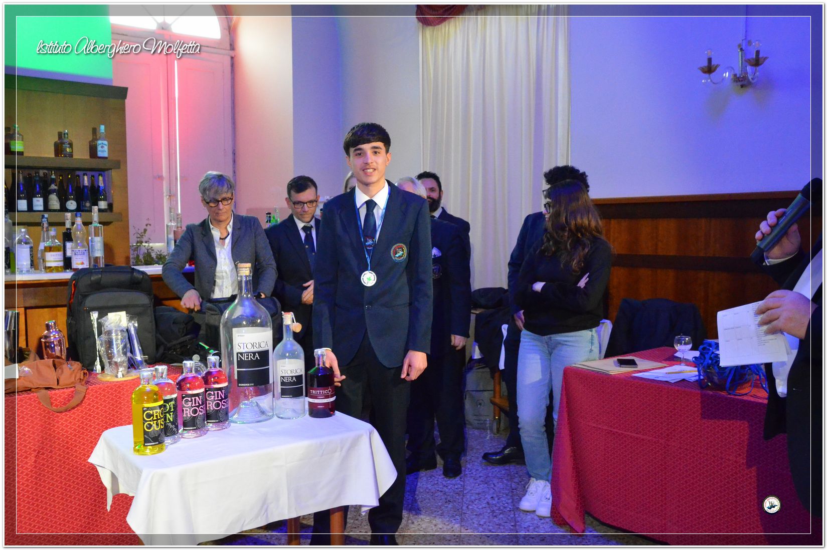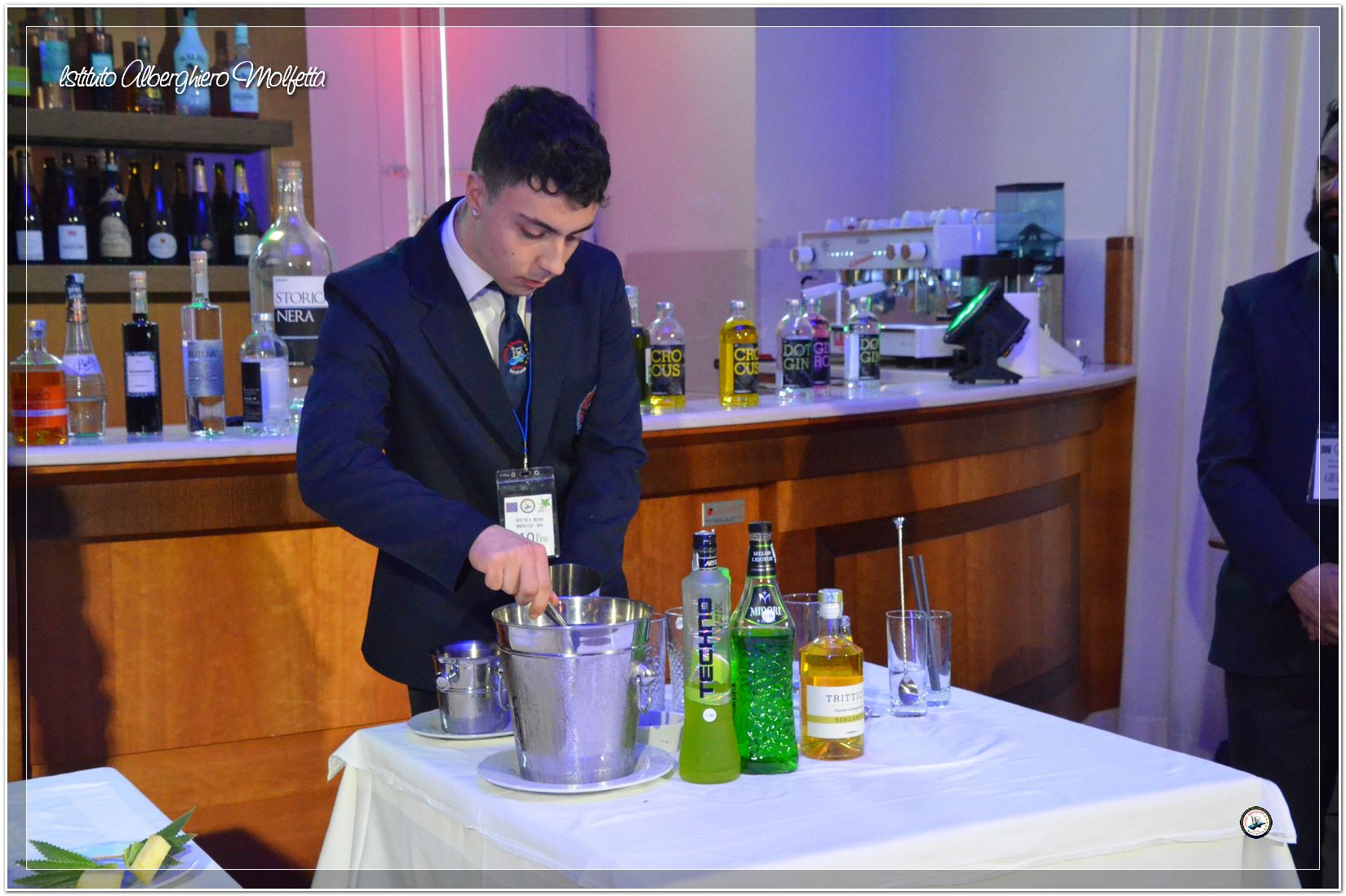 Gli studenti delle seconde classi e quelli del tiennio del settore sala si sono esibiti nella preparazione di cocktails che sono stat giudicati da una commisssione conposta dai delegati dell’AIBES PUGLIA Associazione Italiana Barman e Sostenitori, dell’AIS Puglia Associazione Italiana Sommelier e da Cristina Domenis in rappresentanza della nota distilleria di Cividale del Friuli DOMENIS 1898.