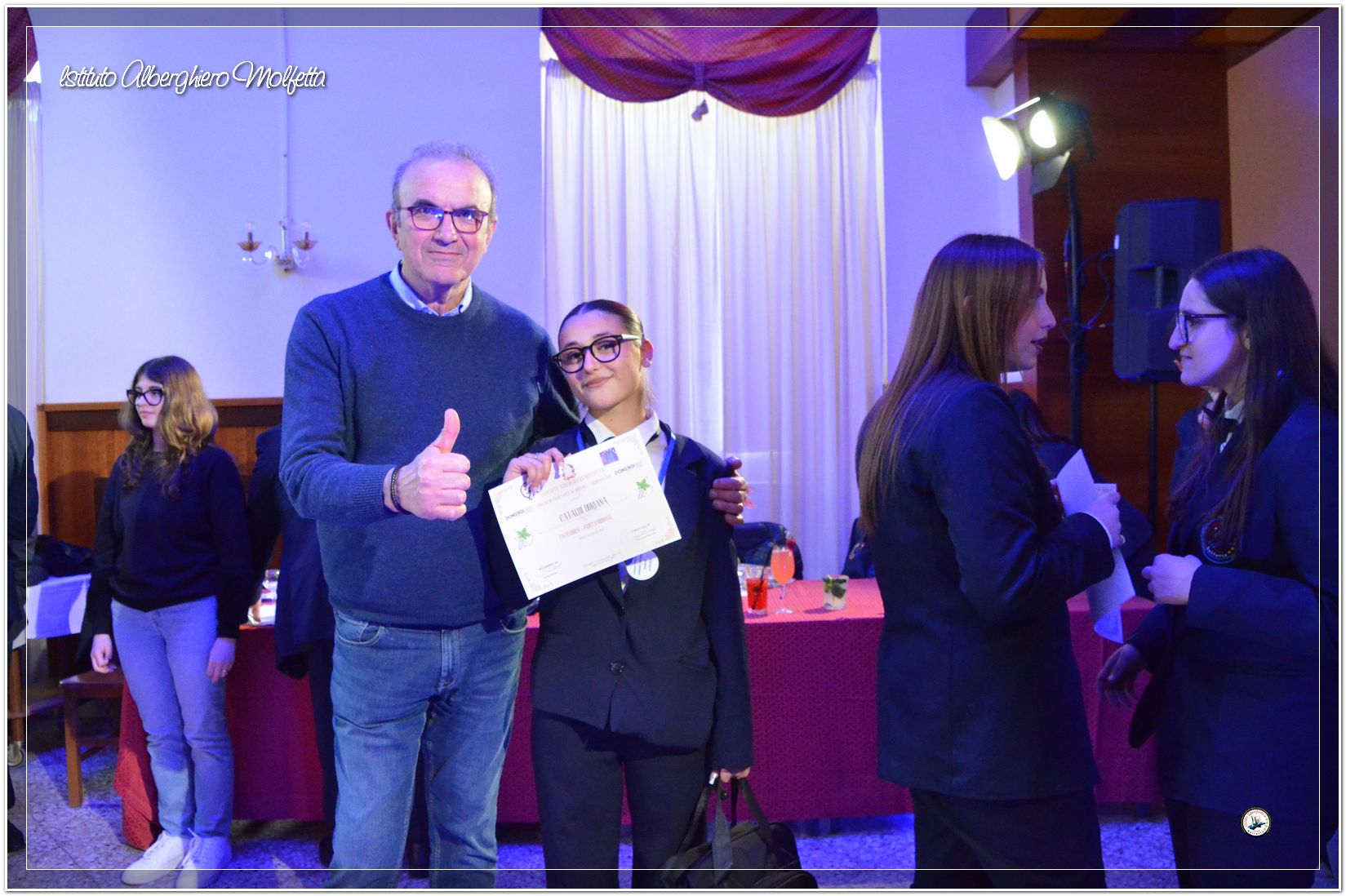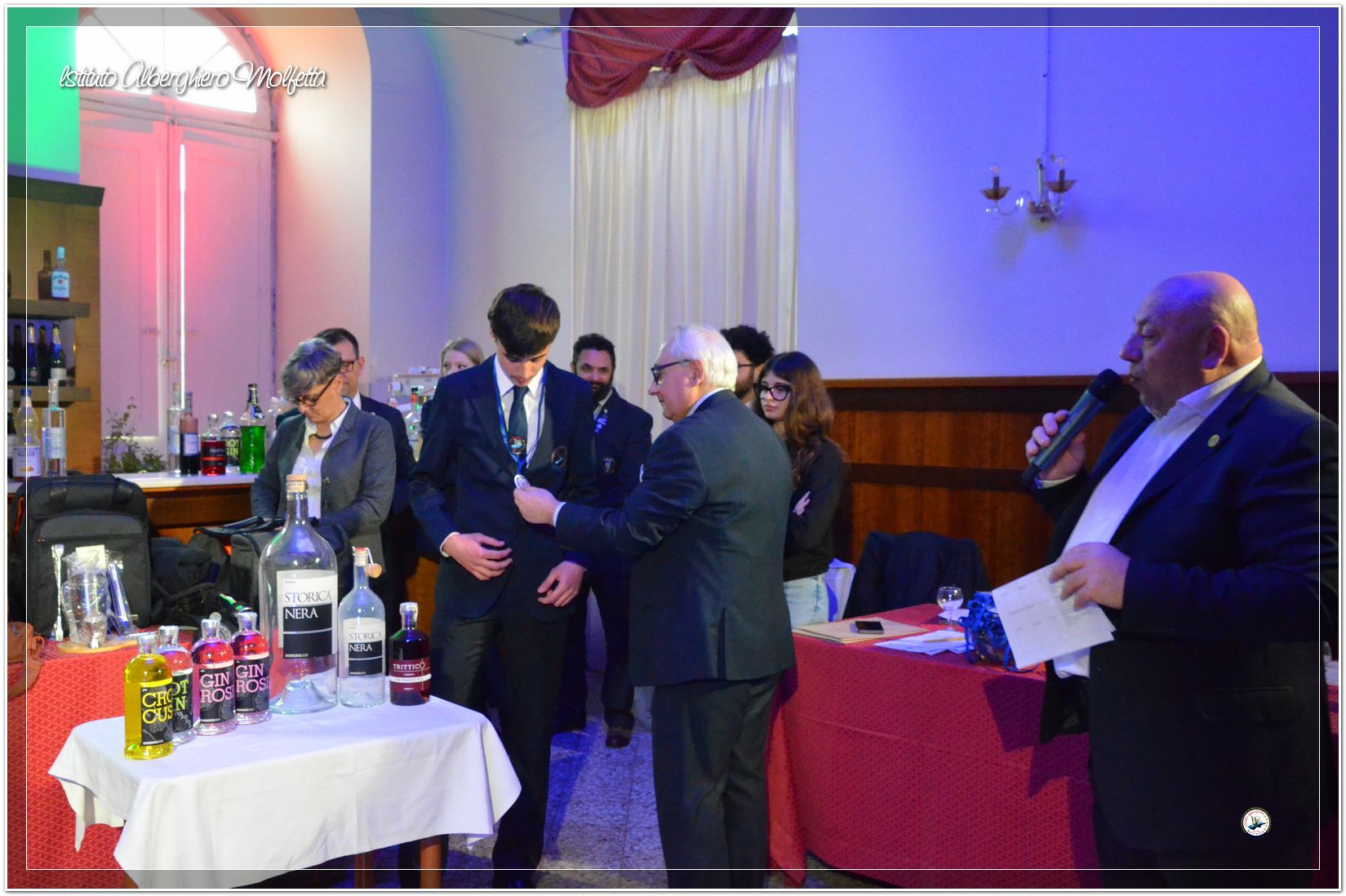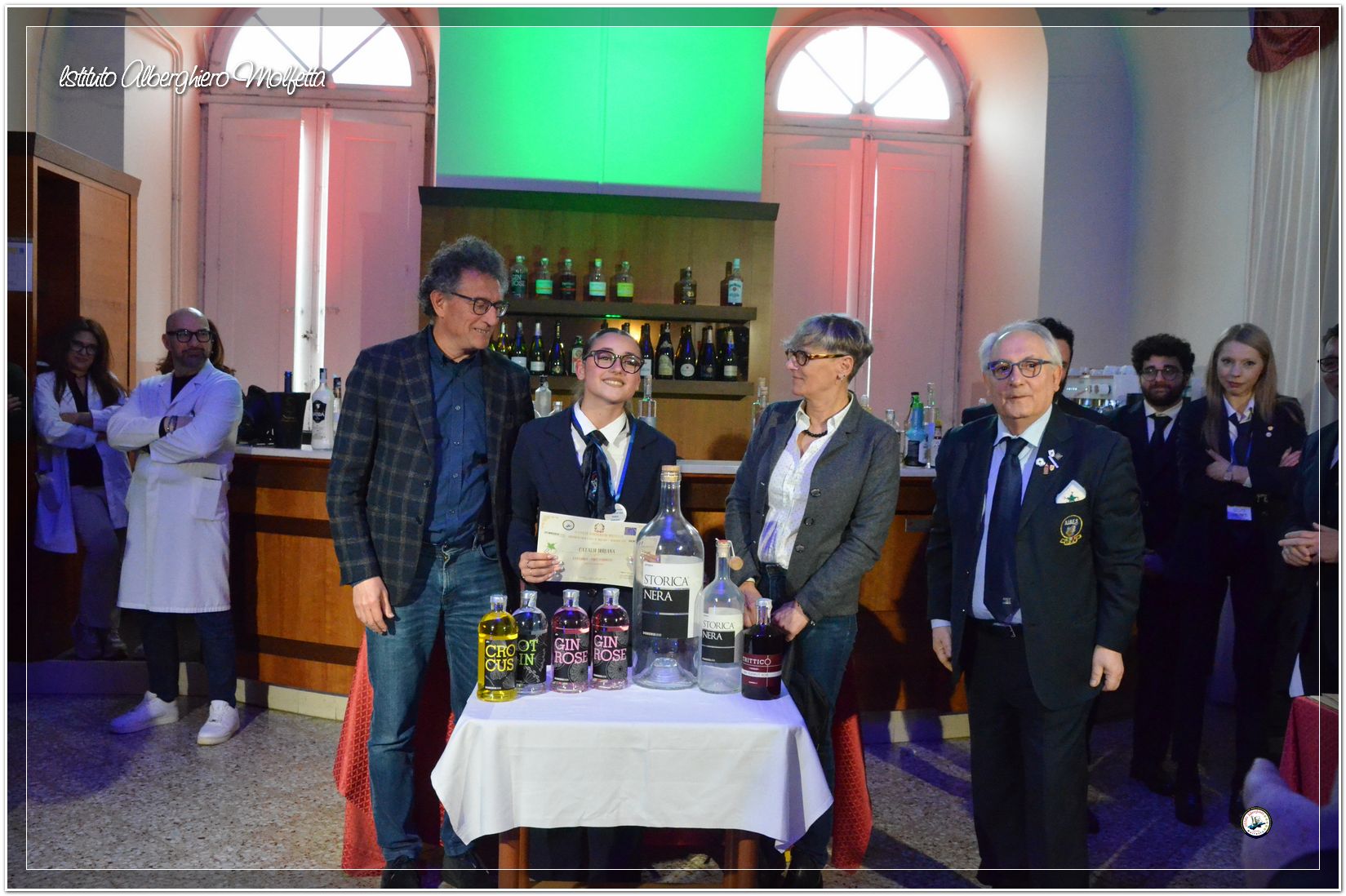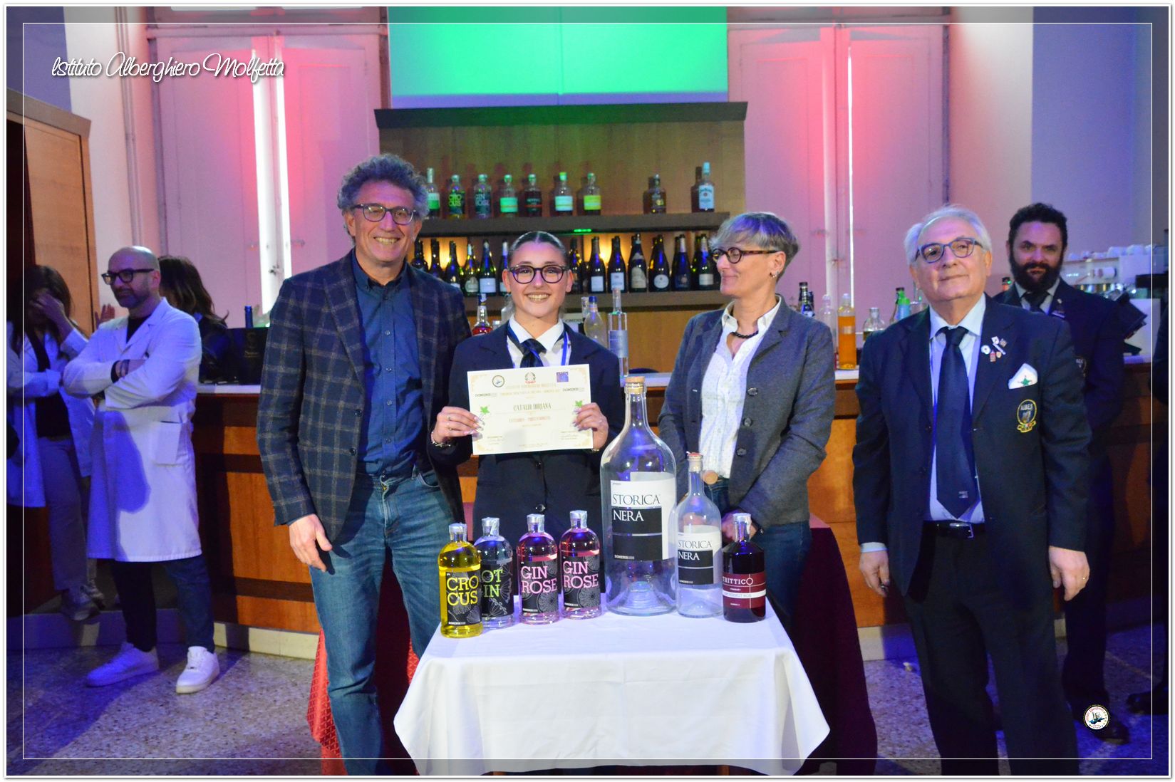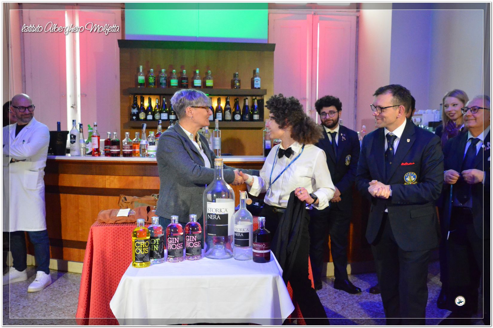 Gli studenti delle seconde classi e quelli del tiennio del settore sala si sono esibiti nella preparazione di cocktails che sono stat giudicati da una commisssione conposta dai delegati dell’AIBES PUGLIA Associazione Italiana Barman e Sostenitori, dell’AIS Puglia Associazione Italiana Sommelier e da Cristina Domenis in rappresentanza della nota distilleria di Cividale del Friuli DOMENIS 1898.