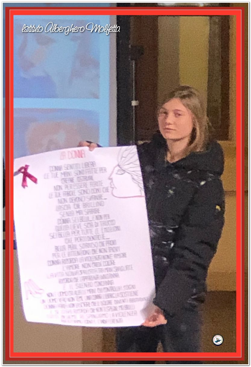 La performance si è conclusa con la recitazione della poesia “Donna”, prodotta da una delle studentesse partecipanti. Questo momento ha reso omaggio alle esperienze e alle emozioni delle donne, aggiungendo ulteriore significatività all’evento. La giovane artista ha saputo catturare l’attenzione del pubblico con la sua interpretazione appassionata, rendendo visibile e palpabile la lotta e la resilienza femminile.