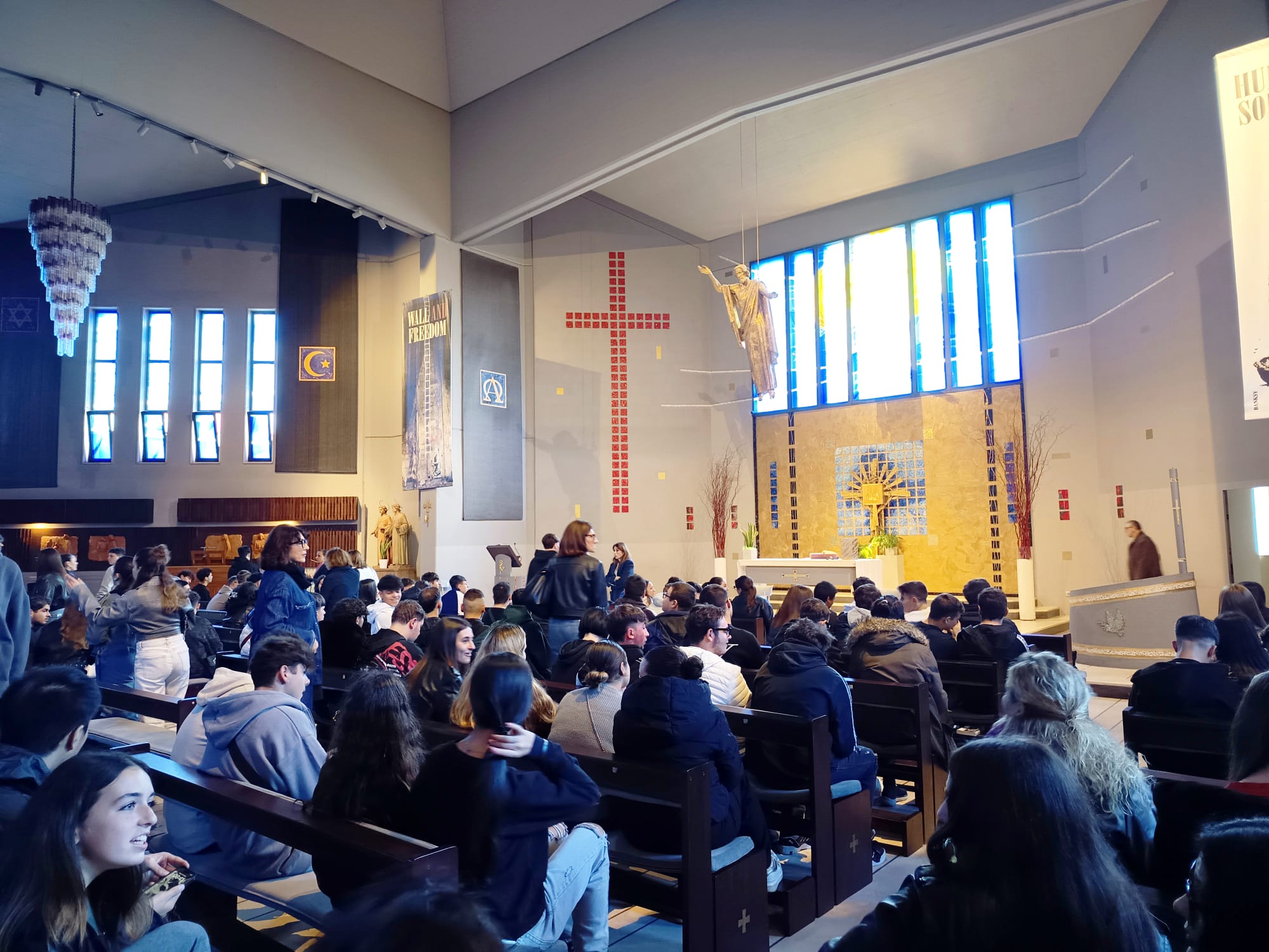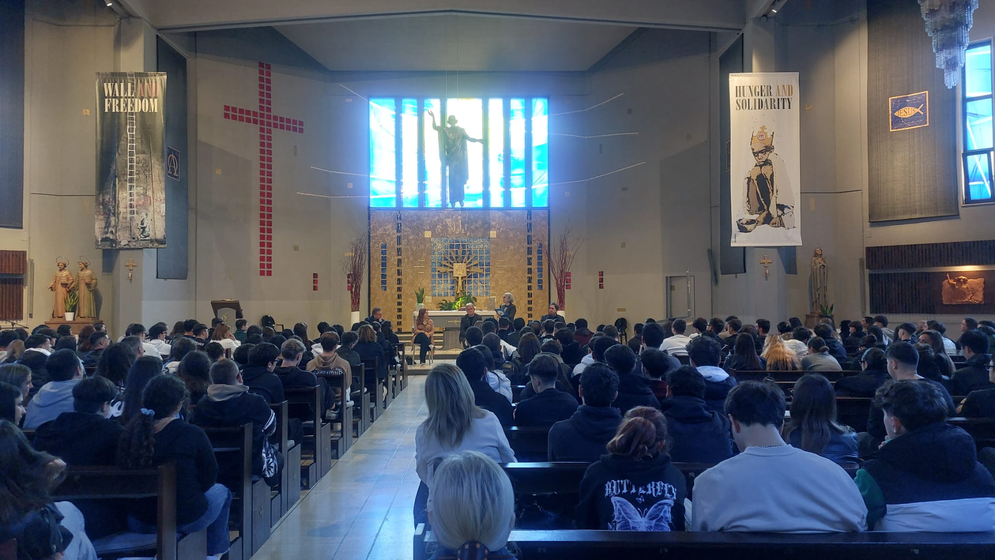 Ieri mattina 18 ottobre, si è tenuto, presso la parrocchia san Pio X di Molfetta, organizzato dal nostro Istituto, il convegno: “Pace e dignità per il popolo palestinese” che ha visto partecipi tutti gli alunni delle classi quinte e tre delegati per ciascuna classe seconda, terza e quarta.