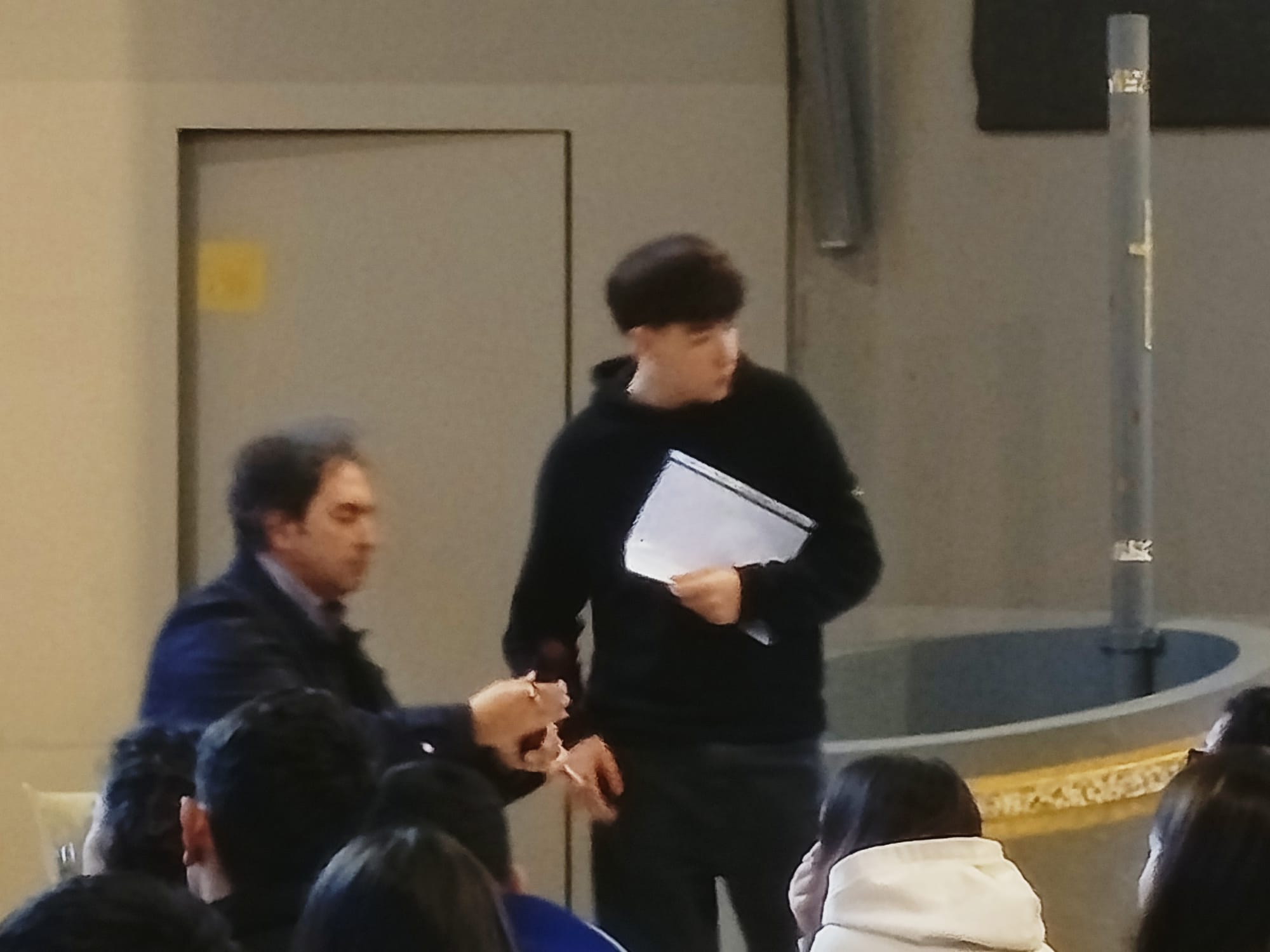 Il dottor Mohammad Afaneh ha illustrato brevemente le origini del conflitto tra il popolo israeliano e quello palestinese e le ragioni per le quali quest’ultimo fa fatica a rinunciare alla propria terra e all’autodeterminazione. Ha continuato dicendo che la pace sarà difficile senza giustizia sociale e politica per il popolo palestinese. Tuttavia, si è augurato, in un prossimo futuro, un unico stato palestinese che veda la convivenza di più popoli così come esperito nel passato più remoto. Nel suo intervento ha coinvolto i ragazzi rispondendo alle loro domande in un clima interessato e attento nel quale non sono mancati momenti di commozione e di lunghi applausi.