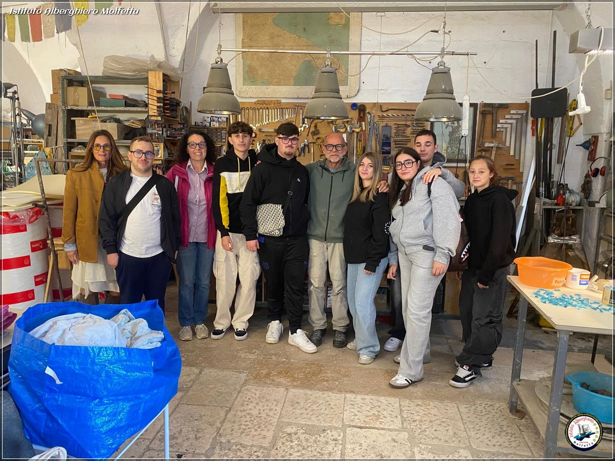 Durante la passeggiata del caratteristico borgo antico, la classe ha potuto conoscere il maestro Peppino Campanella e vagabondare per la sua bottega, luogo incantato, dove lo scarto industriale del vetro, attraverso la abili mani del maestro, trova nuova vita e luce. Un reale esempio di economia circolare.
