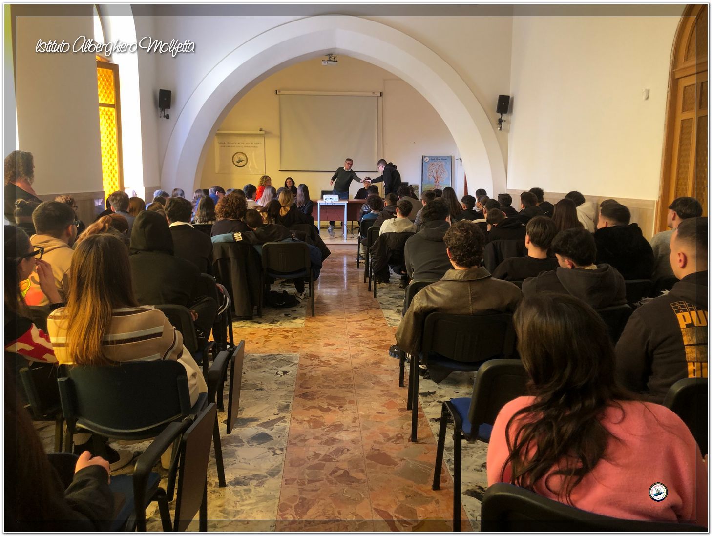 Il momento più alto e paradossale dell’evento si è toccato durante il dibattito finale. In un mondo dove il silenzio è spesso scambiato per onore, gli studenti hanno ribaltato il paradigma. È emersa una promessa collettiva, tanto audace quanto necessaria: il desiderio di “fare gli infami”. Nel gergo della malavita, l’infame è colui che parla, colui che rompe l’omertà. Per gli studenti dell’Alberghiero, quel termine è diventato un vessillo di legalità. I ragazzi hanno dichiarato apertamente di voler imparare a denunciare, a non girarsi dall’altra parte, a “tradire” il codice del silenzio per fedeltà alla giustizia. Tuttavia, la loro promessa porta con sé una condizione e un appello accorato al mondo degli adulti: “Siamo pronti a fare gli infami, a scegliere la verità sopra ogni cosa, purché siano gli adulti a insegnarcelo, a darci l’esempio e a non lasciarci soli in questa scelta.” L’incontro si è concluso senza il rumore delle mani che battono, come richiesto, ma con il rumore ben più profondo delle idee che germogliano. Pinuccio Fazio ha lasciato l’istituto consapevole che il suo messaggio ha trovato terreno fertile. La sfida è lanciata: trasformare l’omertà in parola e la paura in impegno civile, costruendo una società dove “fare l’infame” significhi, semplicemente, essere cittadini liberi.
